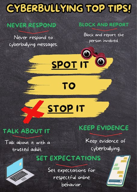 We will report any instances of bullying to a trusted adult to seek help and resolution.