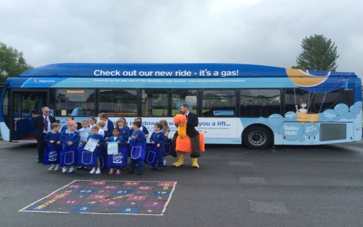 Many of the children entered the ‘Green week’ competition organised by Stagecoach. The children completed a variety of environmentally friendly activities such as litter picking during their half term holidays and the staff at Stagecoach were very impressed by all of their efforts. Staff from Stagecoach came to talk to us about their new gas bus and presented the winners with prizes. Each class enjoyed exploring the gas bus and the winners were treated to a short ride on the bus.